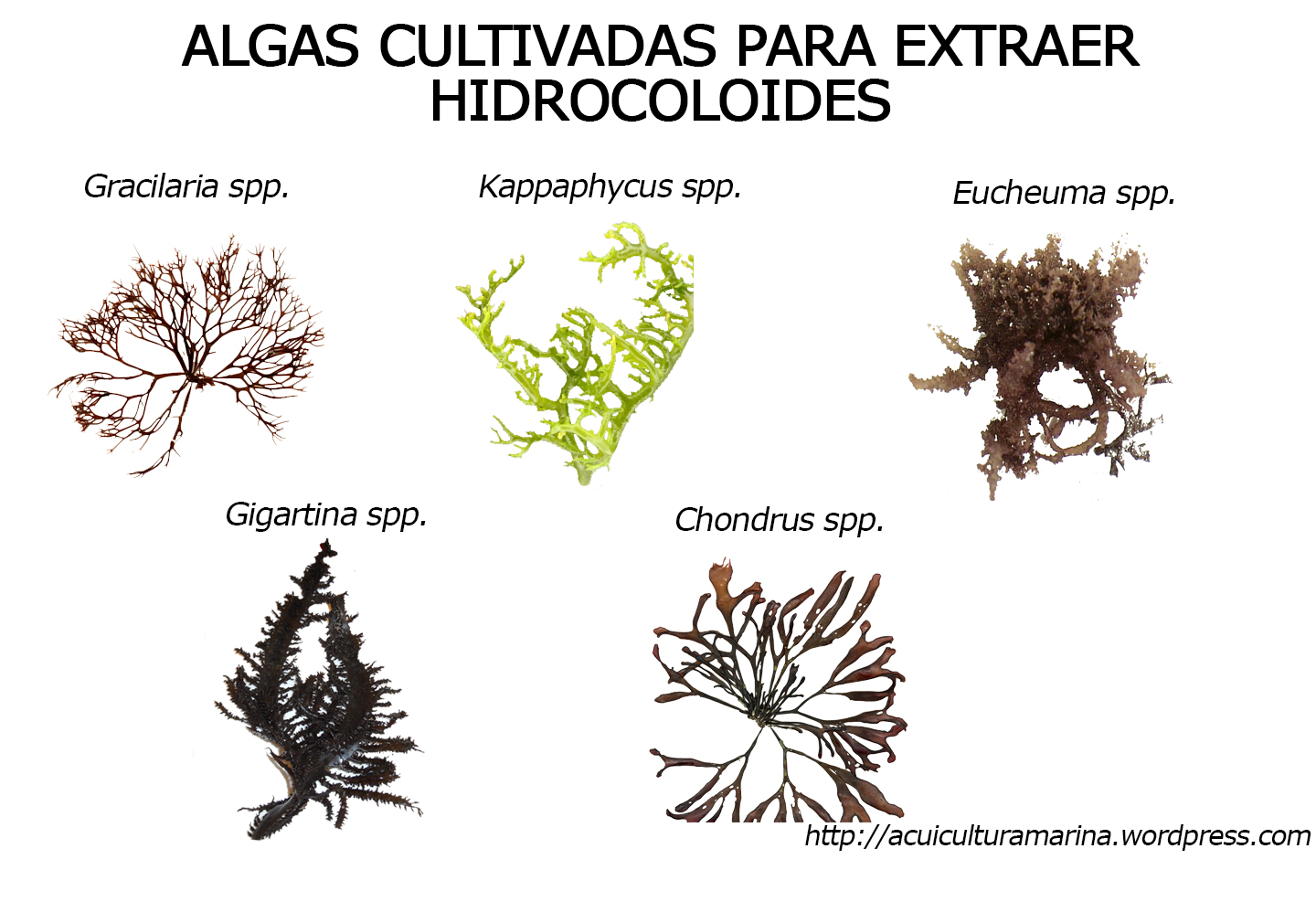 En cuanto al consumo de algas marinas para usos industriales, destaca la producción de aditivos alimentarios como el alginato, el agar y la carragenina. Se estima que al año se destinan en torno a 1.000.000 de Toneladas de algas frescas para este uso. La producción de agar y carragenina se cubre casi en su totalidad con algas cultivadas, en cambio para la producción de alginato aun se emplean extractos de algas pardas recolectadas del medio natural, debido al elevado coste que supone su cultivo.