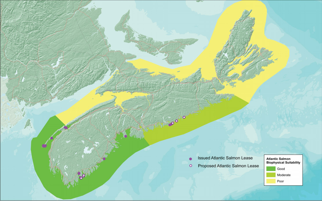 Recomiendan clasificar la costa de Nueva Escocia en tres grandes áreas (Roja, Naranja y Verde) según su aptitud para la piscicultura, en función del color deberán cumplirse requisitos más estrictos para la obtención del permiso de explotación de una granja marina de peces.