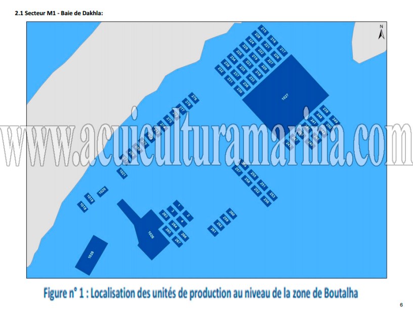 En las concesiones que están dentro de la bahía de Dahkla se delimitan las especies a cultivar, pero en la zona intermedia y de mar abierto (Bahía de Cintra) se establece una clasificación más general.